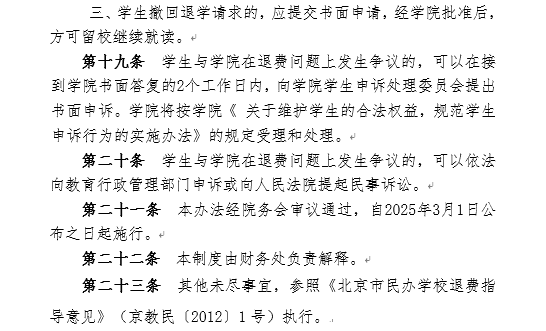 北京新亚研修学院2025学年收退费管理制度面向社会公示、监督
