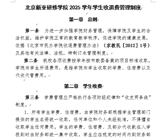 北京新亚研修学院2025学年收退费管理制度面向社会公示、监督