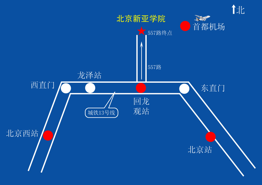 乘车路线:1、北京站乘地铁——东直门换乘13号线城铁——回龙观地铁站换乘557路公交车——终点站下车即到校区