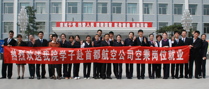 2012年4月26日欢送我院12名航空学子赴首都航空空乘岗位就业